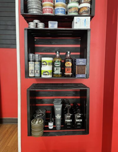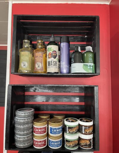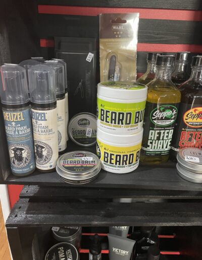 Bootleg Barbers carries a variety of hair and beard products including; hair shampoo, conditioner, pomades, tonic, beard balms, oils, butter, brushes, and more!
